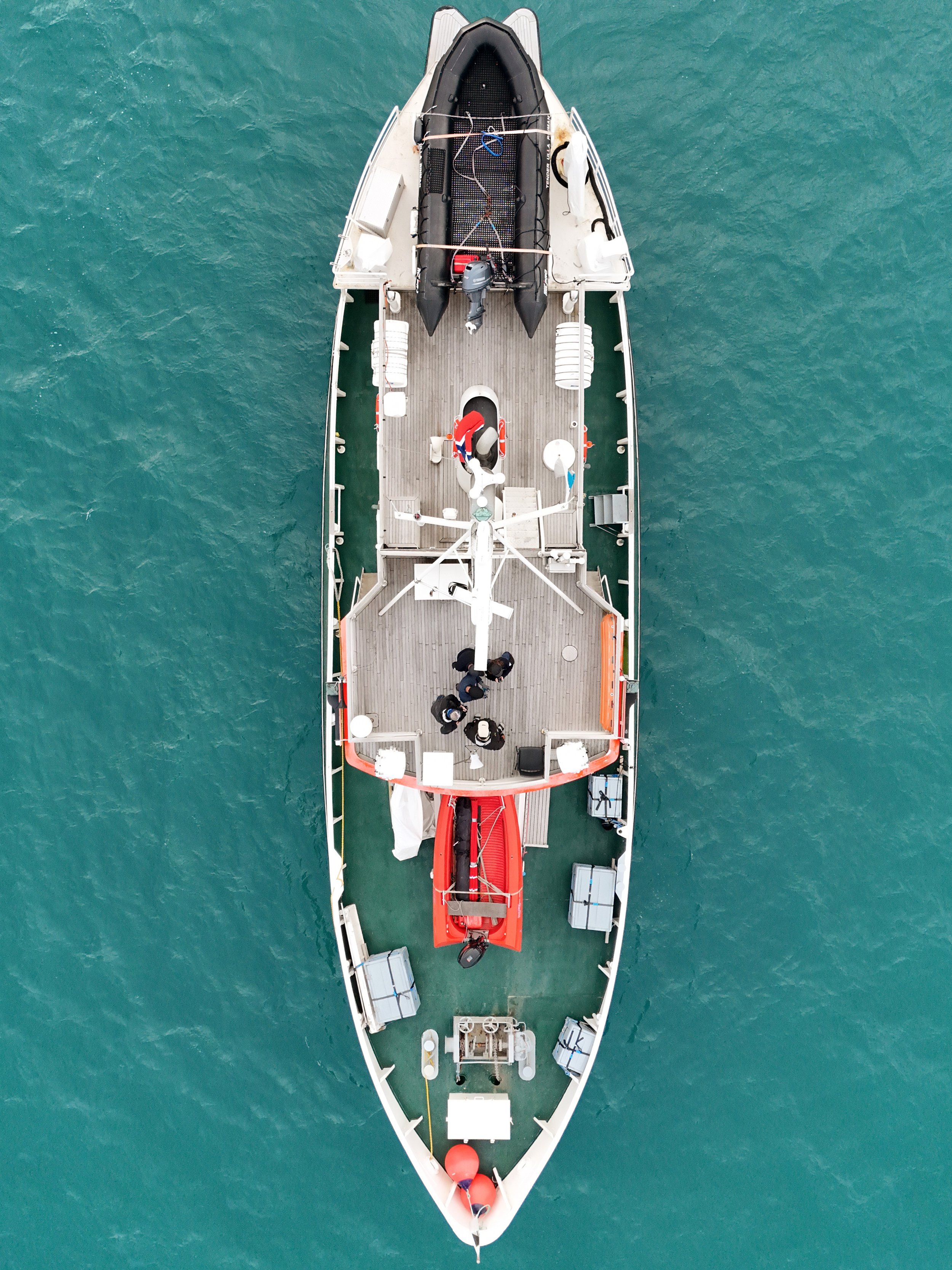 Onboard, research teams have access to winches for CTD and sampling, a multibeam echosounder, and two versatile workboats for landings and near-shore operations. The vessel features workspaces, a large foredeck for equipment handling, and ample storage, including freezers for samples.